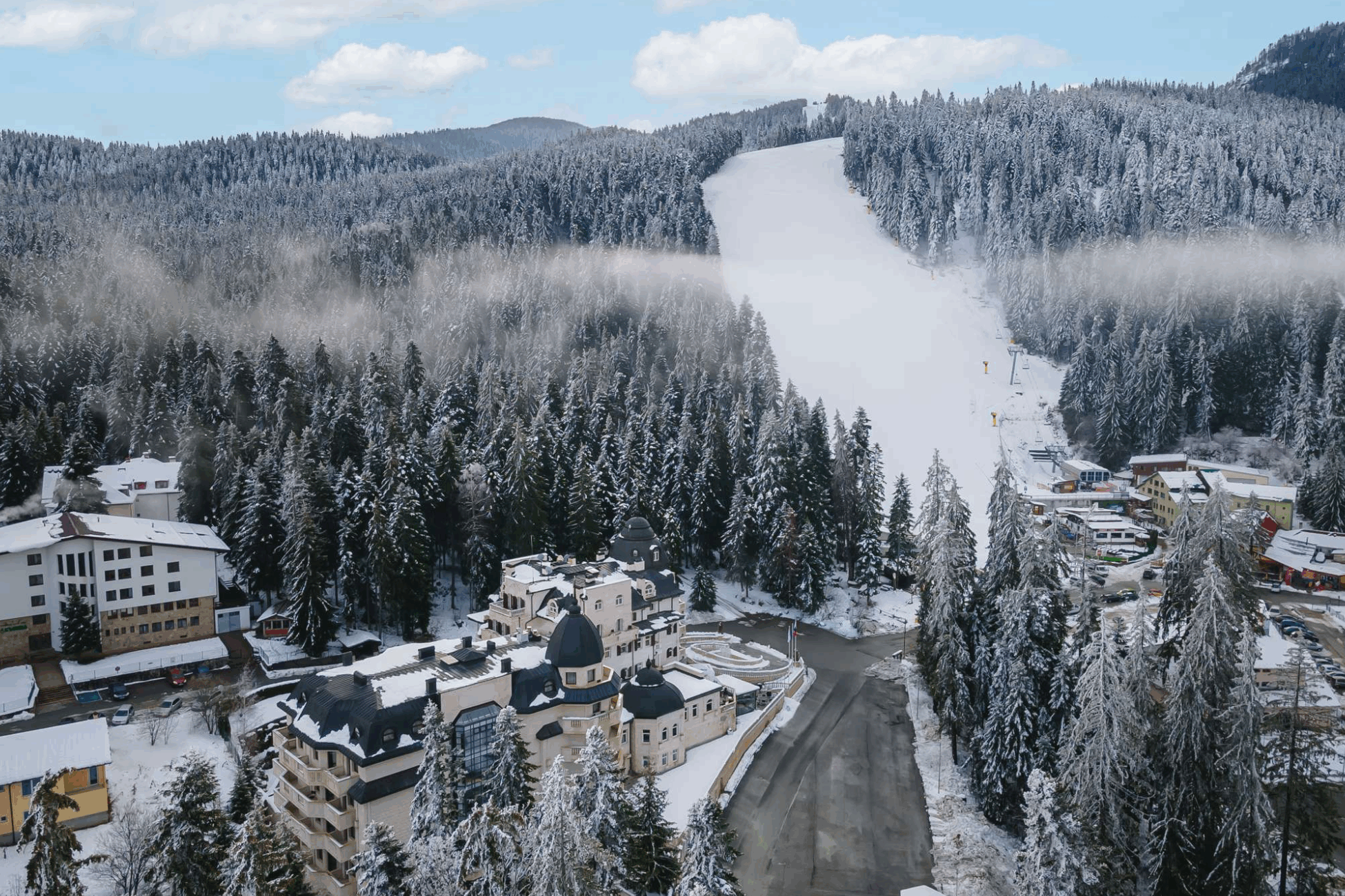The Borovets ski resort features three interconnected ski areas—Sitnyakovo, Yastrebets, and Markudjik—linked by a gondola lift, modern chairlifts, and button lifts. As one of the largest ski resorts in Bulgaria, Borovets boasts a rich history spanning over 120 years.