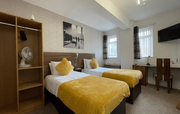 The Ruskin Hotel is situated within Blackpool town centre and is only a stone’s throw from the Blackpool’s main attractions, including Winter Gardens, Blackpool Tower, Sea Life Centre, and Madam Tussauds. The renowned Roly’s Bar is open daily for guests alongside our 220-seater Cabaret Lounge with live entertainment every day. All bedrooms are dressed to a high standard with furnishings to compliment the room decoration.