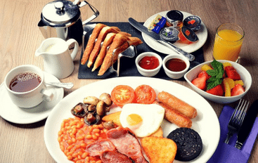• Breakfast and evening meals