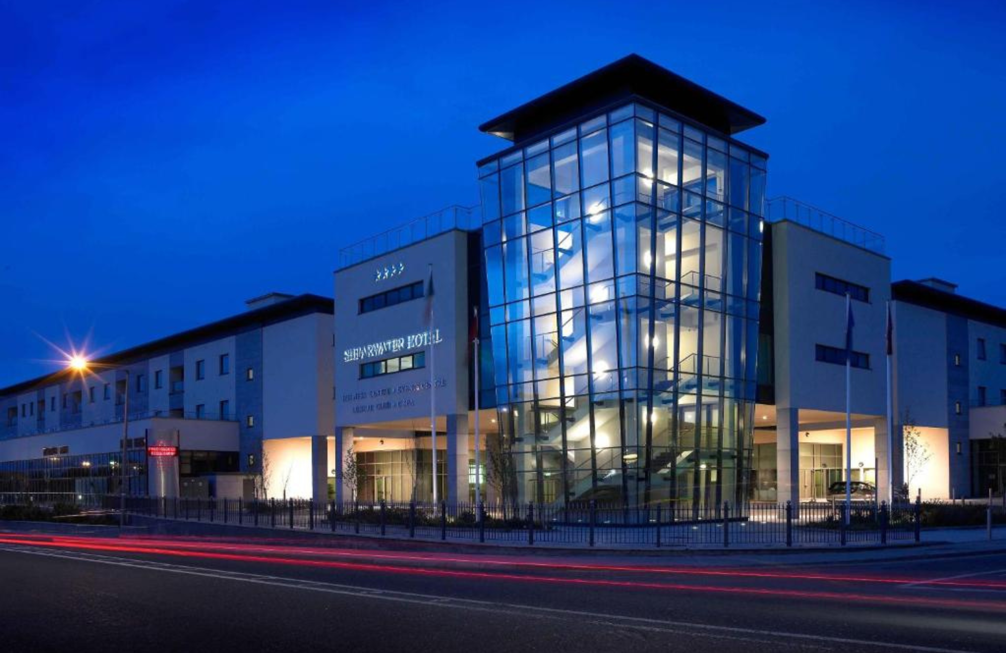 The Shearwater Hotel & Spa is a four-star hotel located in Ballinasloe, County Galway, Ireland. The hotel features 104 guest rooms, including double, twin, family, and accessible rooms. All rooms are equipped with amenities such as smart televisions, workstations with power connectivity, tea and coffee facilities, hairdryers, luxury toiletries, and complimentary Wi-Fi. Guests also have access to the Shear Fitness gym, a 20-meter swimming pool, sauna, and steam room.