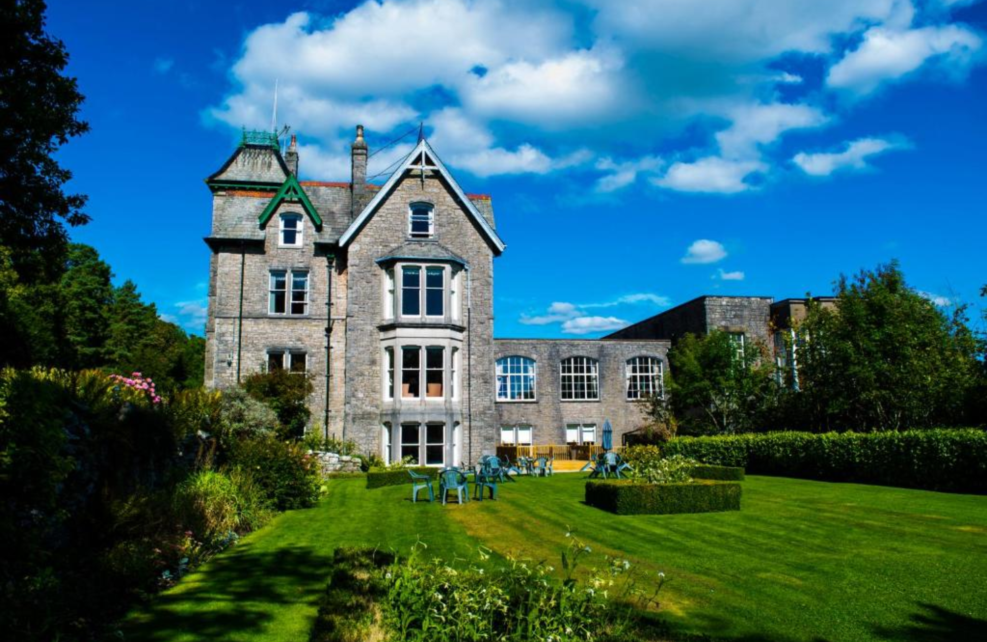 The Cumbria Grand Hotel, Grange-over-sands, is set in 20 acres of private gardens and woodlands overlooking Morecambe Bay. The hotel has retained its Victorian grandeur yet still provides every modern amenity. All bedrooms have private facilities, colour TV and tea and coffee making facilities. Ther is a comfortable lounge, bar, and the hotel has a lift.