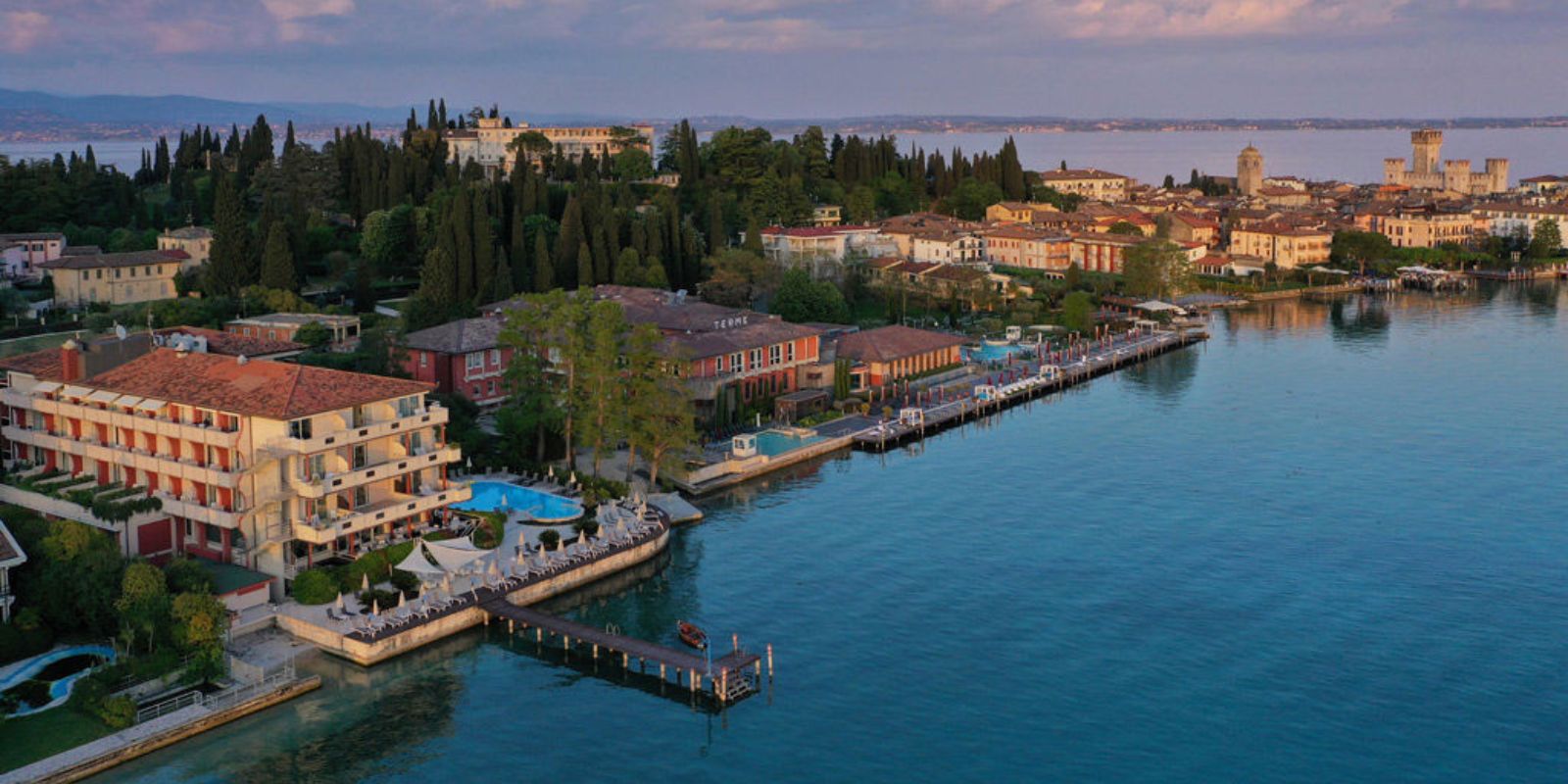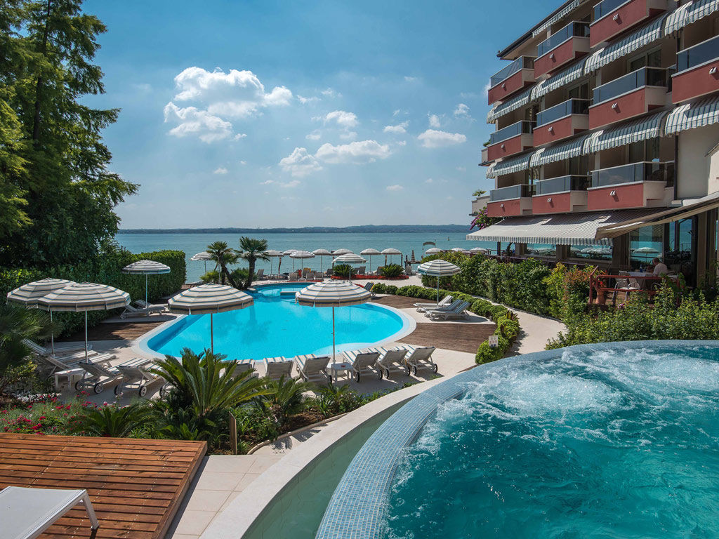 Hotel Continental Wellness & Spa lies in a quiet, panoramic position directly overlooking Lake Garda, on the tip of the Sirmione peninsula. The hotel features a mix of traditional and modern rooms with elegant spa facilities, perfect for relaxing after a busy day exploring.