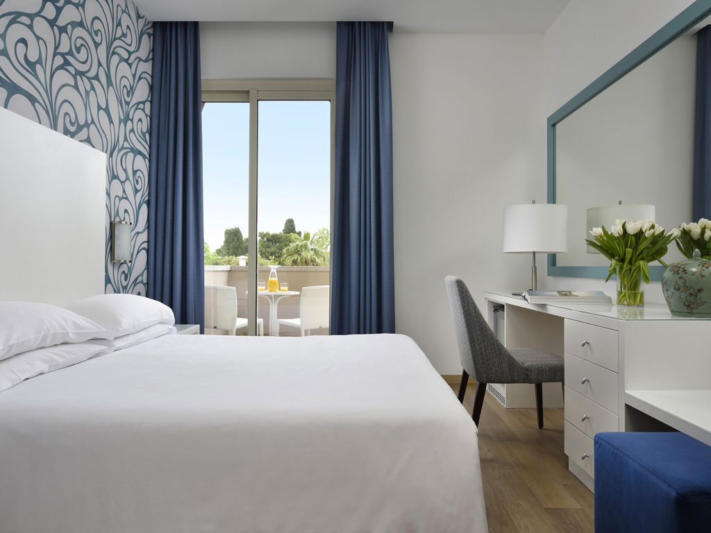 - Twin/Double Superior room - double bed or twin beds, desk and wardrobe, ceramic flooring. includes free Wi-Fi Internet connection, LED TV with satellite channels, air-conditioning, minibar, safe and telephone. The bathroom has bathtub and/or shower, free vanity set, hairdryer and courtesy kit with bathrobe and slippers for two.