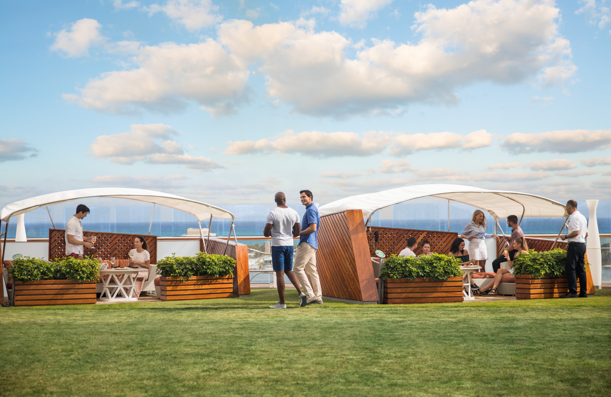 - Solstice Deck: When you arrive at the highest point on the ship, you won't be disappointed. Whether you're looking for the ideal spot to do some early morning yoga, stretch out on a canopied lounge bed, or for the best view of the beautiful starry sky to cap off another magical evening aboard, The Solstice Deck is where your search ends and the relaxation begins.
