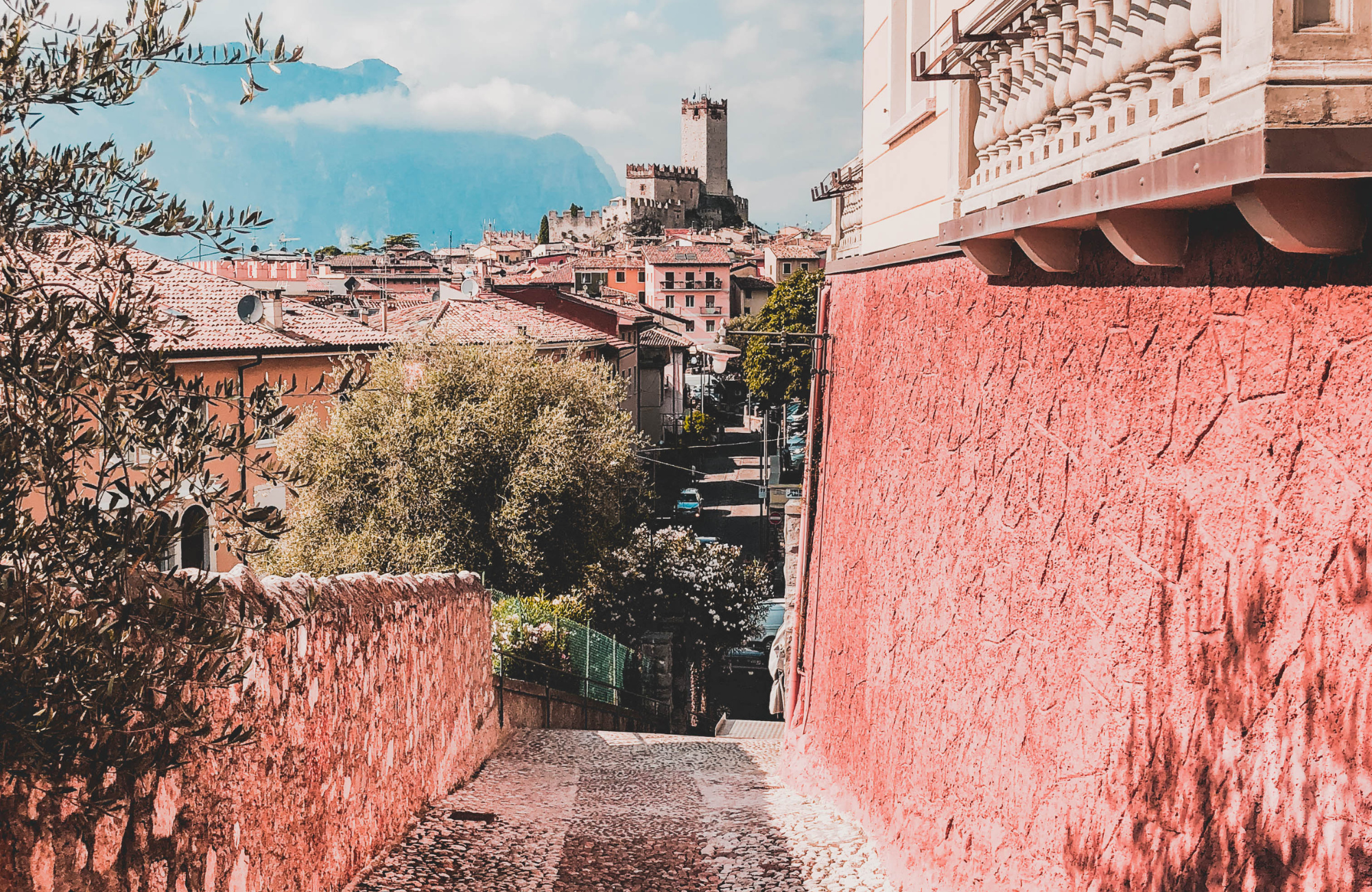 The Italian town of Malcesine sits on the eastern shore of Lake Garda. It is a picturesque town renowned for its cobbled streets, infamous castle, blue lake waters and features a massive mountain ridge behind, Mount Baldo.