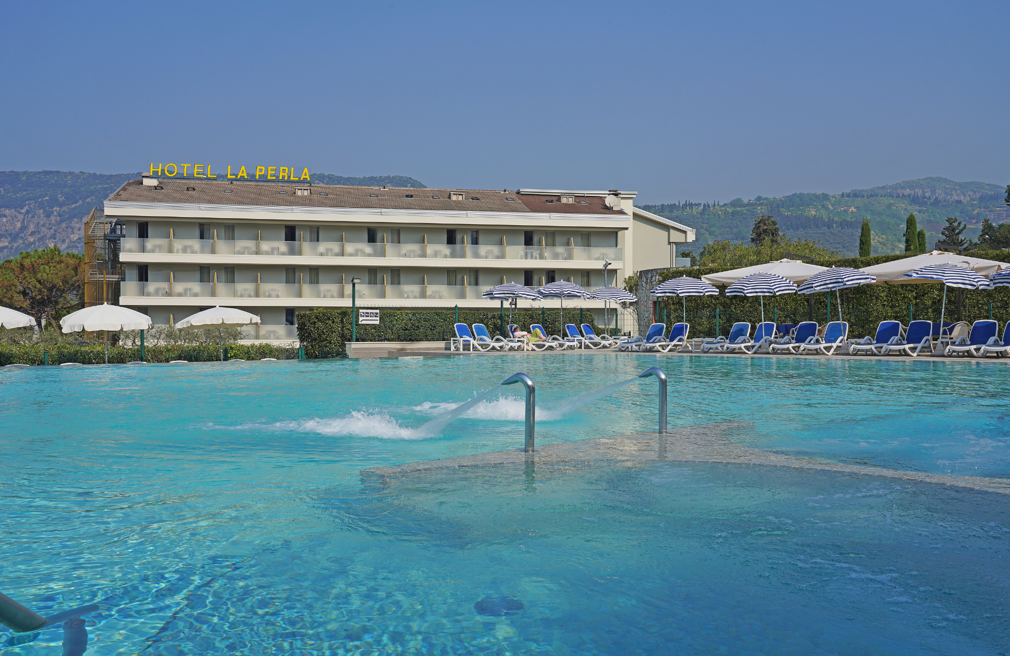 Ideally located in Garda, just steps from the shimmering shores of Lake Garda and the charming old town, Hotel La Perla is a dream destination for outdoor lovers and sports enthusiasts alike. Here, every day brings a perfect mix of joy, tranquillity, and discovery. The hotel’s long list of amenities ensures you'll feel completely taken care of. From the in-house bike rental and spacious lounge with a stylish bar, to secure underground parking – everything is designed with your comfort in mind. The true highlight? The pool area, your daily dose of sun-soaked bliss. Take a dip in the sparkling main pool, let the little ones splash around in the children’s pool, unwind under the shade of olive trees in the tranquil garden, or sip a refreshing poolside drink. Look up, and you might just find yourself lost in the breathtaking view of the nearby Rocca, a panorama that steals hearts without warning. As the sun sets, indulge in a delicious buffet dinner at the hotel’s restaurant, then take a leisurely lakeside stroll to end your day on the perfect note. When it’s time to rest, retreat to one of the 148 modern rooms, thoughtfully equipped with everything you may need: free Wi-Fi, air conditioning, satellite TV, minibar, and an electric kettle with a selection of teas and coffees. You’ll even find a handy bag with pool towels waiting for you, so you can travel lighter and worry less. Last but not least, Hotel La Perla is a dream come true for cycling enthusiasts. With reserved spaces for bikes in the garage, a dedicated washing and repair station, free cycling maps and access to a fully equipped changing room with washer and dryer, every detail is covered for your two-wheeled Lake Garda adventures.
