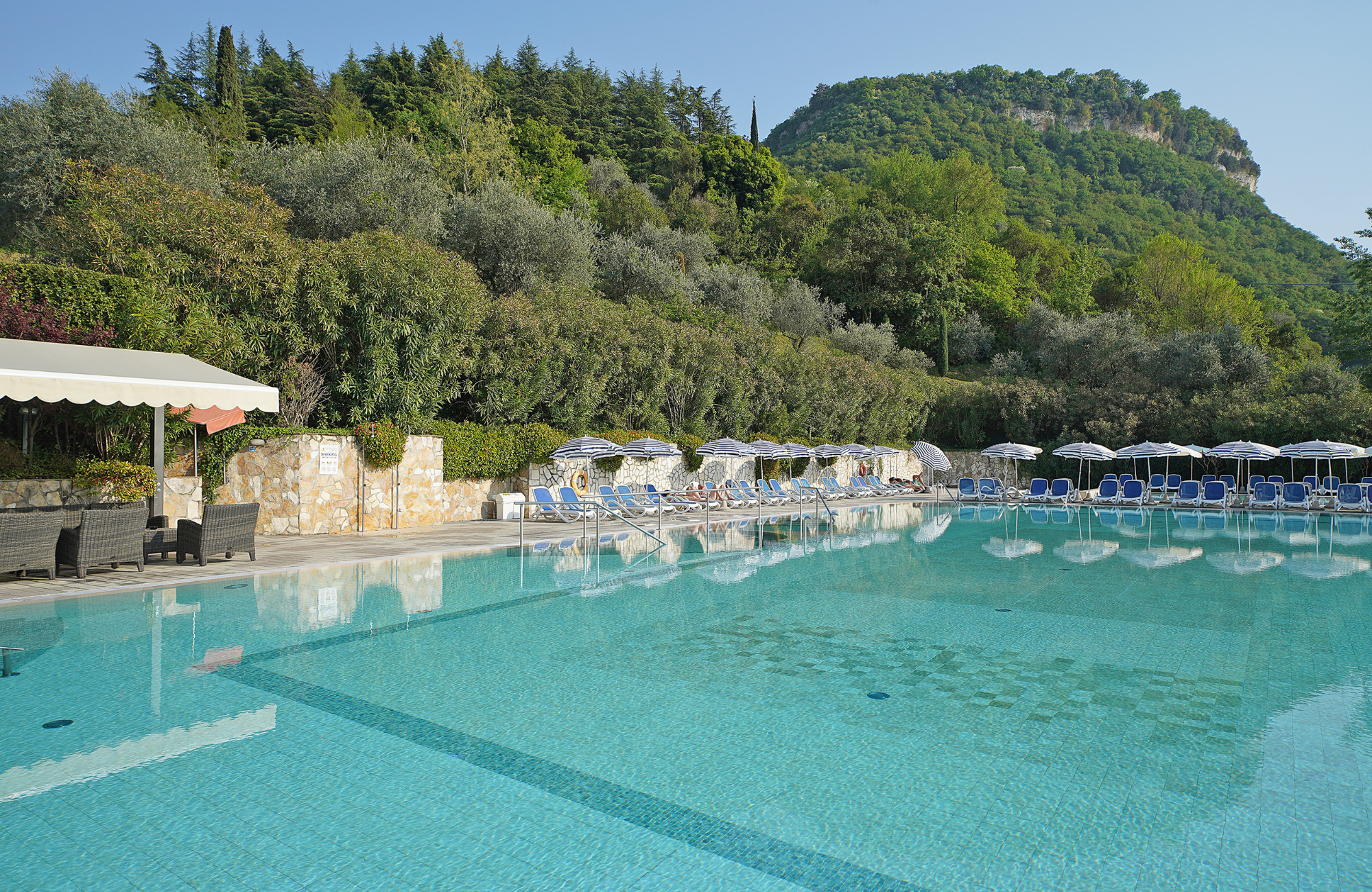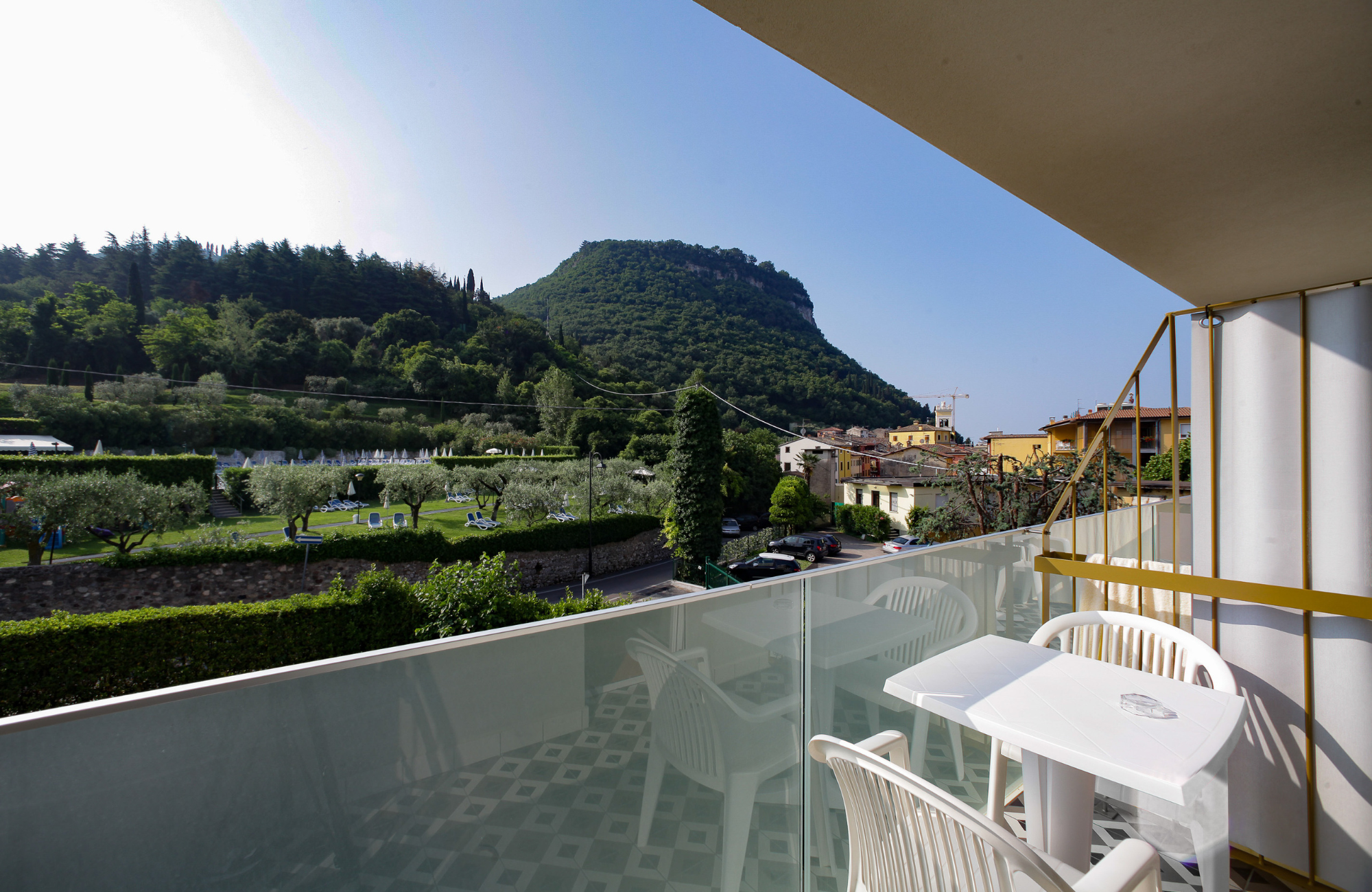 The true highlight? The pool area, your daily dose of sun-soaked bliss. Take a dip in the sparkling main pool, let the little ones splash around in the children’s pool, unwind under the shade of olive trees in the tranquil garden, or sip a refreshing poolside drink. Look up, and you might just find yourself lost in the breathtaking view of the nearby Rocca, a panorama that steals hearts without warning. As the sun sets, indulge in a delicious buffet dinner at the hotel’s restaurant, then take a leisurely lakeside stroll to end your day on the perfect note. When it’s time to rest, retreat to one of the 148 modern rooms, thoughtfully equipped with everything you may need: free Wi-Fi, air conditioning, satellite TV, minibar, and an electric kettle with a selection of teas and coffees. You’ll even find a handy bag with pool towels waiting for you, so you can travel lighter and worry less.