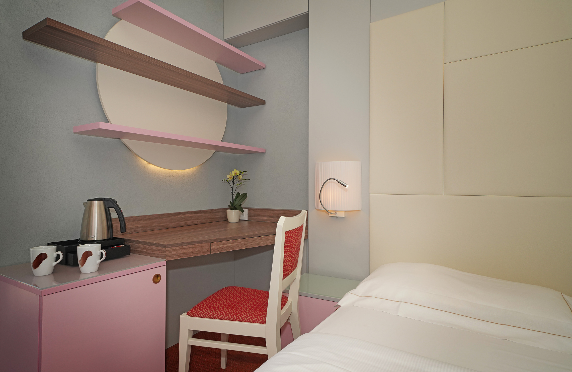• Comfort Top Room with Balcony and Pool - Located on the upper floors, these comfortable double rooms feature a balcony with pool view, complimentary Wi-Fi, heating, and air conditioning. Some rooms are also available for single occupancy. Features a balcony, plush carpet, wardrobe, desk, minibar, safe, satellite TV, telephone, bathroom with shower, WC, bidet, hair dryer, courtesy toiletries, convenient bag with pool towels (in warmer months), electric kettle with a selection of teas and coffees.