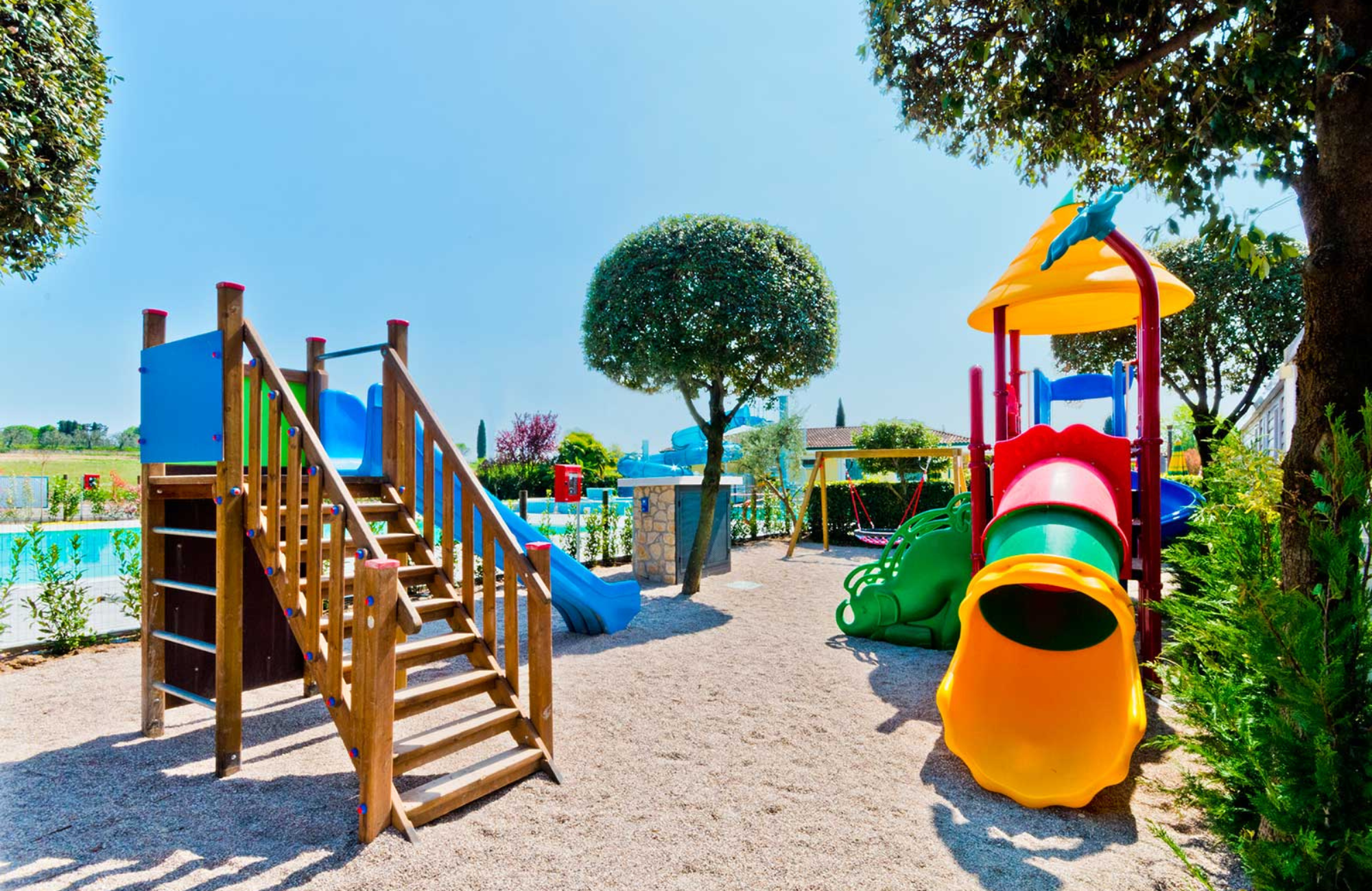 Experience a relaxing getaway at Camping Le Palme in Lazise, Italy. Nestled on Lake Garda, it offers family-friendly amenities like a children’s pool, playground, and lively bar. Enjoy outdoor pools for fun and relaxation. The on-site restaurant serves delicious Italian and international cuisine. Accommodation options range from spacious apartments to cosy bungalows with garden or lake views. Camping Le Palme is your perfect lakeside retreat for fun, comfort, and convenience.