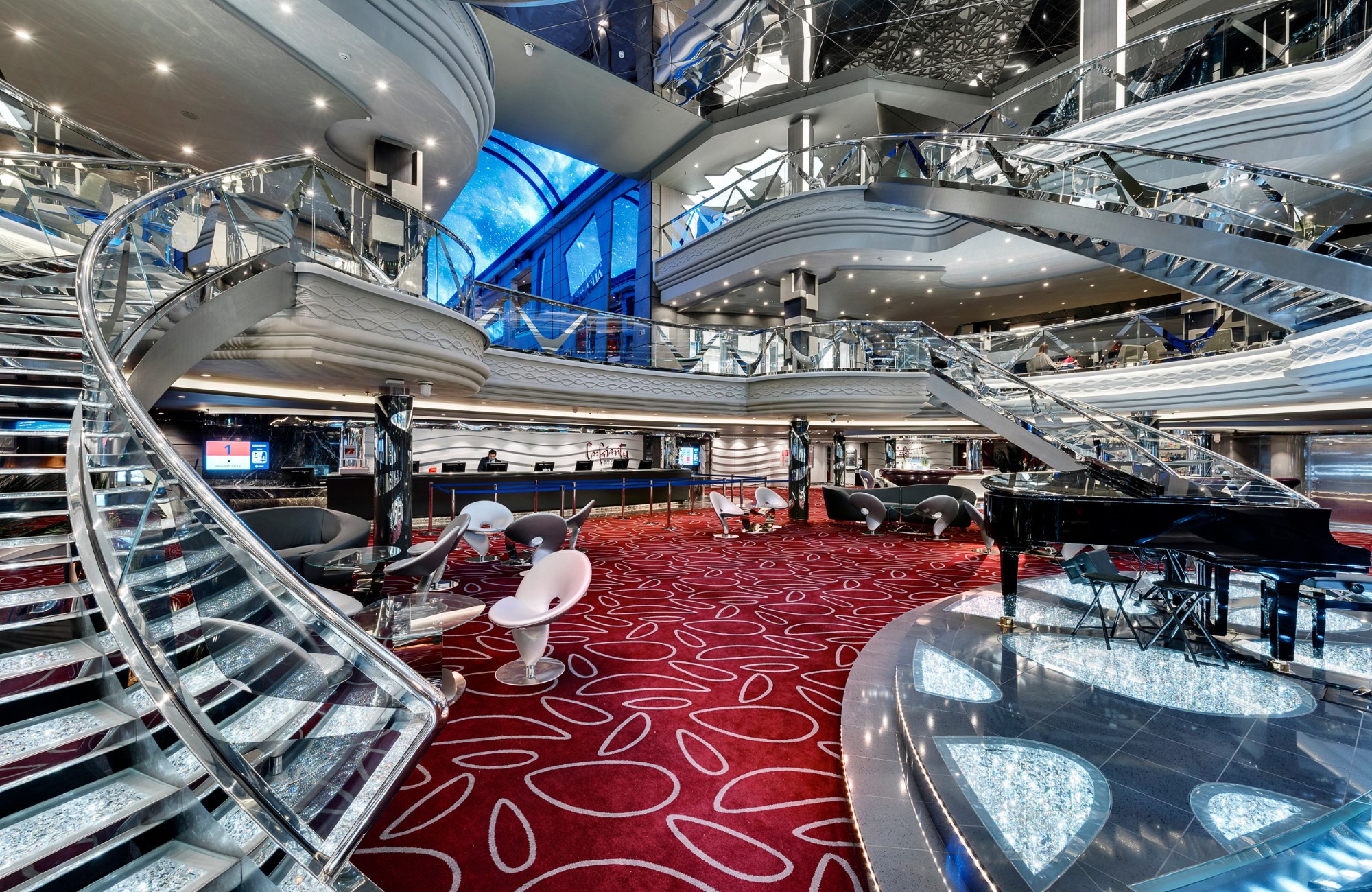 - Entertainment - Experience exclusive shows in unique venues like the Carousel Lounge and the versatile karaoke bar, comedy club, and TV studio & bar. Younger guests will adore the super-amusement park and sports centre. The whole family can enjoy hours of fun at one of the most exciting water parks at sea.