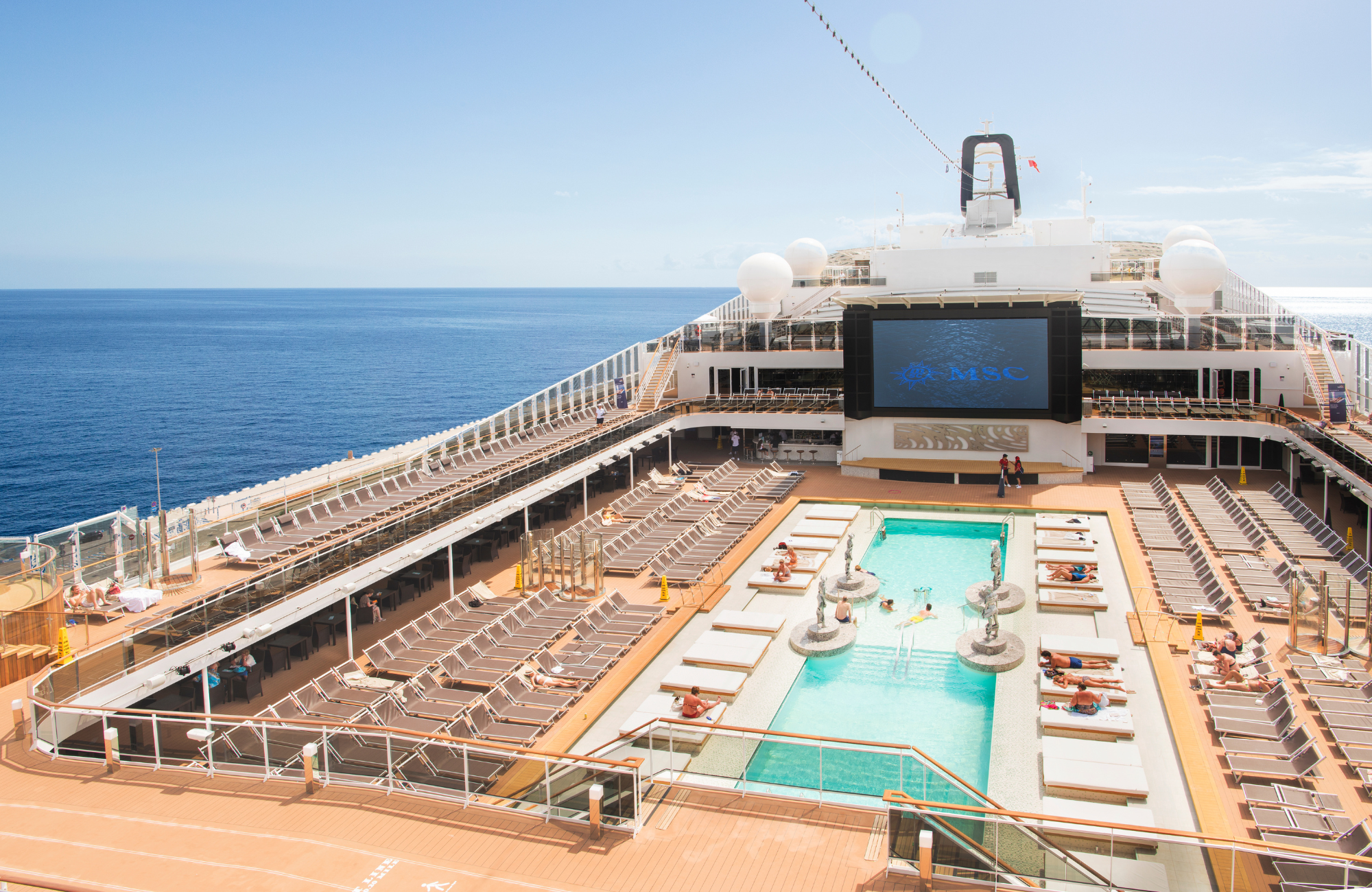 - Horizon Pool - The Horizon Pool provides incredible sea views and ample open-air deck space for sunbathing during the day. By night, it transforms into a breath-taking outdoor venue for dancing and various entertainment under the stars.